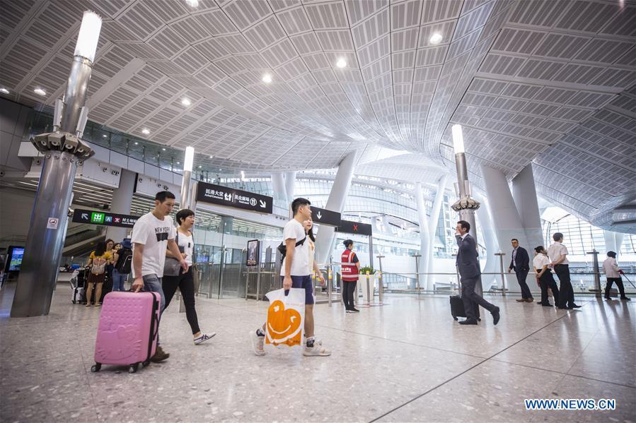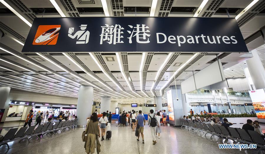 Passengers depart from the West Kowloon Station in Hong Kong, south China, Sept. 23, 2019. Monday marked the first anniversary of the launch of Hong Kong section of Guangzhou-Shenzhen-Hong Kong Express Rail Link. (Xinhua/Lu Ye)