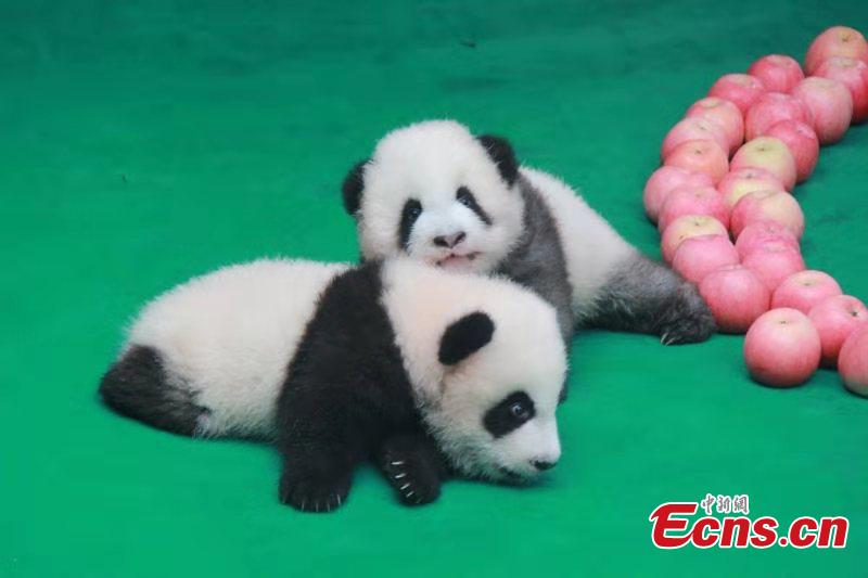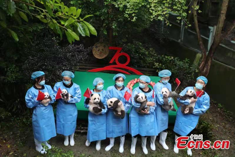 Panda cubs born in 2019 make a public appearance at the Chengdu Research Base of Giant Panda to celebrate the upcoming 70th anniversary of the founding of the PRC, in Chengdu, Southwest China's Sichuan province, on Sept 24, 2019. (Photo provided to China News Service)