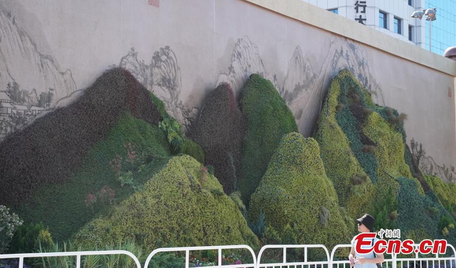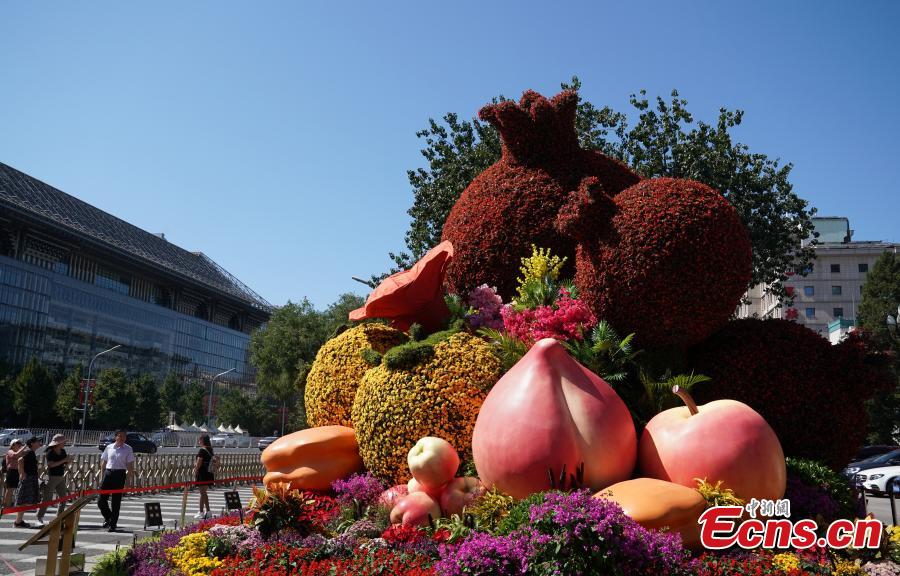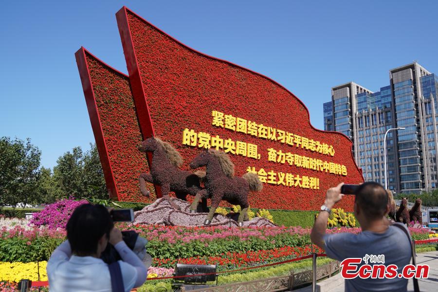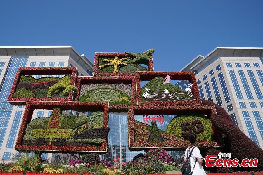 Ornamental flower beds in different shapes on various topics are plated along streets in Beijing, Sept. 24, 2019. China will put on a grand celebration followed by a military parade and mass pageantry at Tian'anmen Square for its National Day on Oct. 1, marking the 70th anniversary of the founding of the People's Republic of China.(Photo: China News Service/Zhang Xinglong)