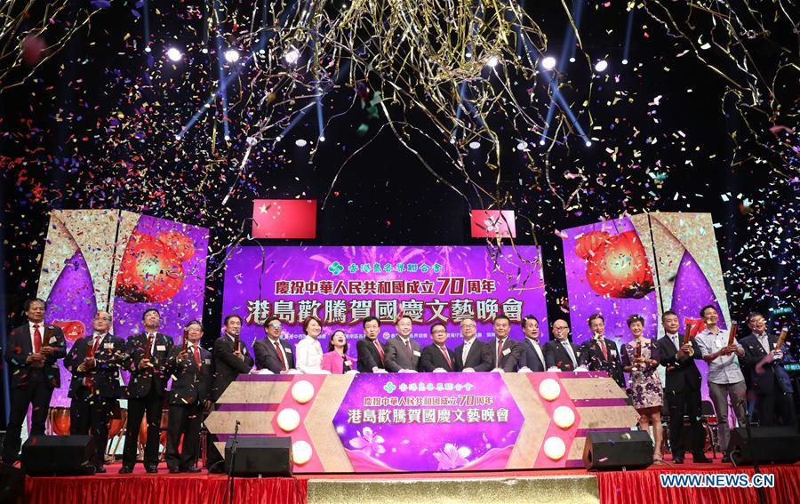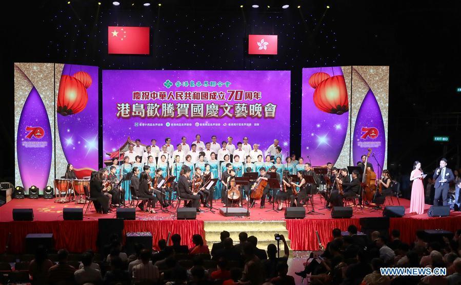 Artists perform on stage during a gala in celebration of the 70th anniversary of the founding of the People's Republic of China (PRC) held in Hong Kong, south China, Sept. 28, 2019. (Xinhua/Wu Xiaochu)