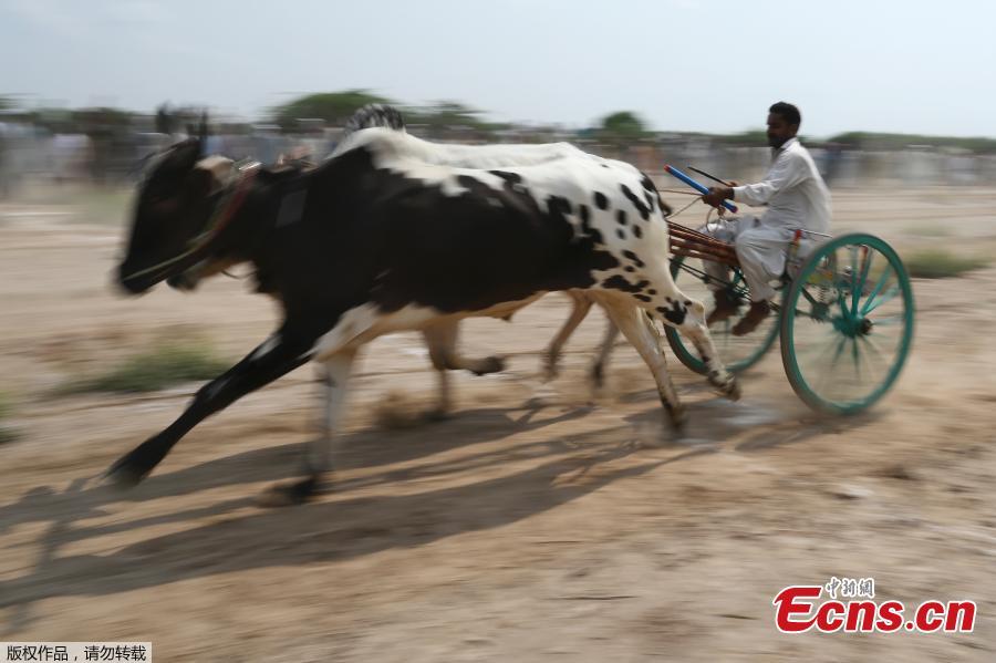 In this picture taken on Septemebr 28, 2019 farmers take part in a traditional bull race in Faisalabad. The traditional competition attracts landlords and farmers from all around the province where the race is held, and they all bring their fastest and strongest bulls in hopes of gaining a reputation. (Photo/Agencies)