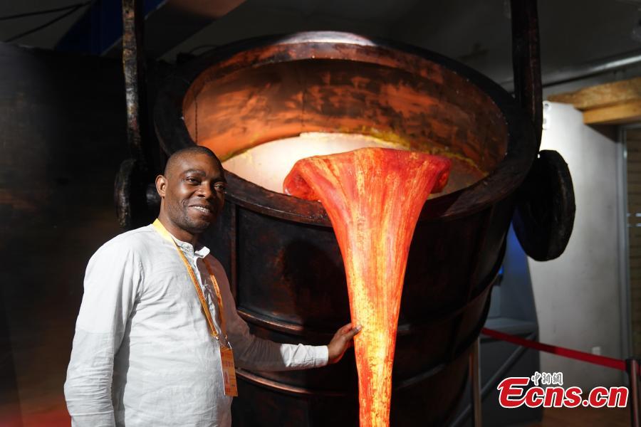 A media delegation visits the China Tangshan Industry Museum, located in Tangshan City, North China’s Hebei Province, Sept. 27, 2019. Tangshan is an important industrial powerhouse in north China. The delegation includes both Chinese and foreign reporters. (Photo: China News Service/Zhang Xinglong)
