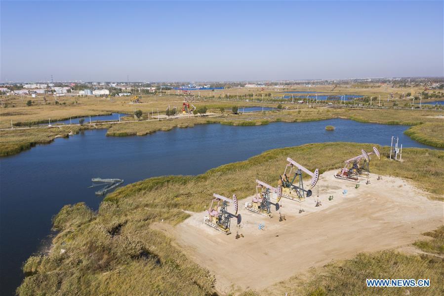 Photo taken on Sept. 28, 2019 shows facilities at Daqing Oilfield in Daqing, northeast China's Heilongjiang Province. Daqing Oilfield, discovered on Sept. 26, 1959, is the largest oilfield run by PetroChina and also the country's largest oil production base. The oilfield, once accounting for over half of China's total crude output, had an annual crude production of over 50 million tonnes for 27 consecutive years and over 40 million tonnes for 12 straight years. Its annual crude oil and gas output still remains over 40 million tonnes of oil equivalent, with proven oil reserves at 6.48 billion tonnes. Its annual natural gas output has exceeded 4 billion cubic meters. (Xinhua/Xie Jianfei)