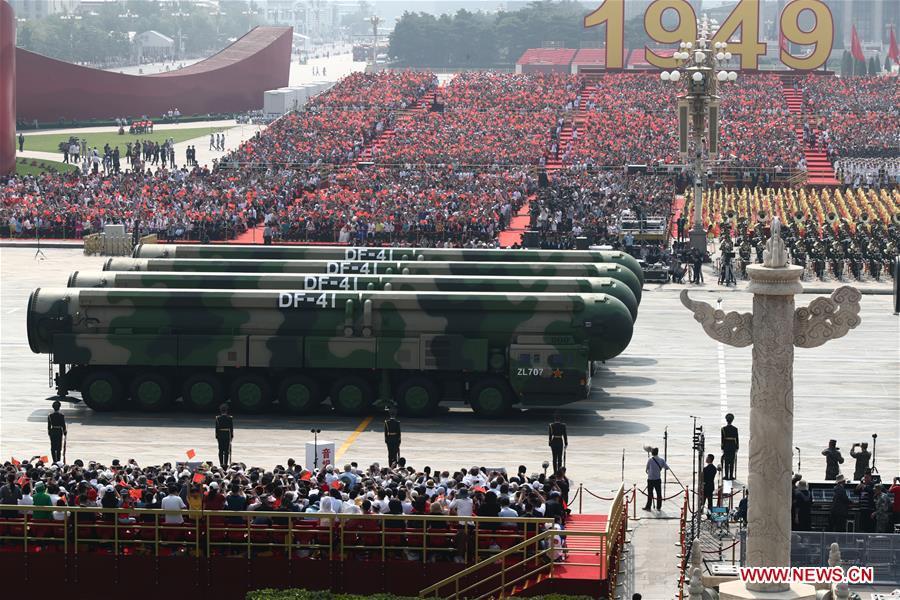 The formation of Dongfeng-41 nuclear missiles takes part in a military parade celebrating the 70th anniversary of the founding of the People's Republic of China (PRC) in Beijing, capital of China, Oct. 1, 2019. (Xinhua/Xia Yifang)