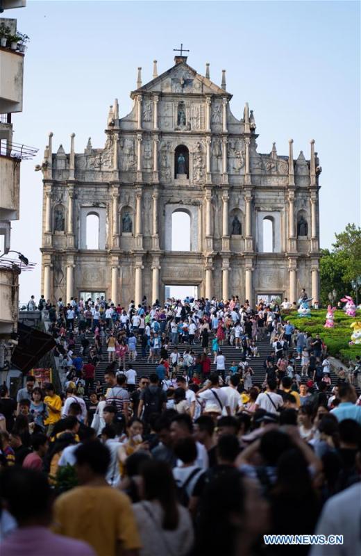 People visit the Ruins of St. Paul's during the National Day holiday in Macao, south China, Oct 2, 2019. (Xinhua/Cheong Kam Ka)