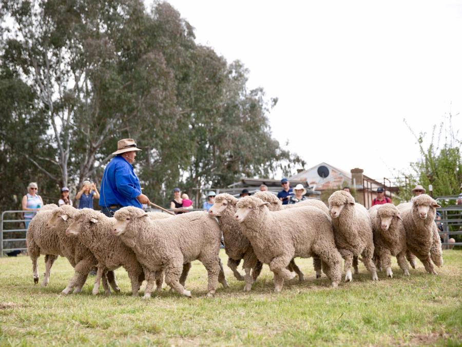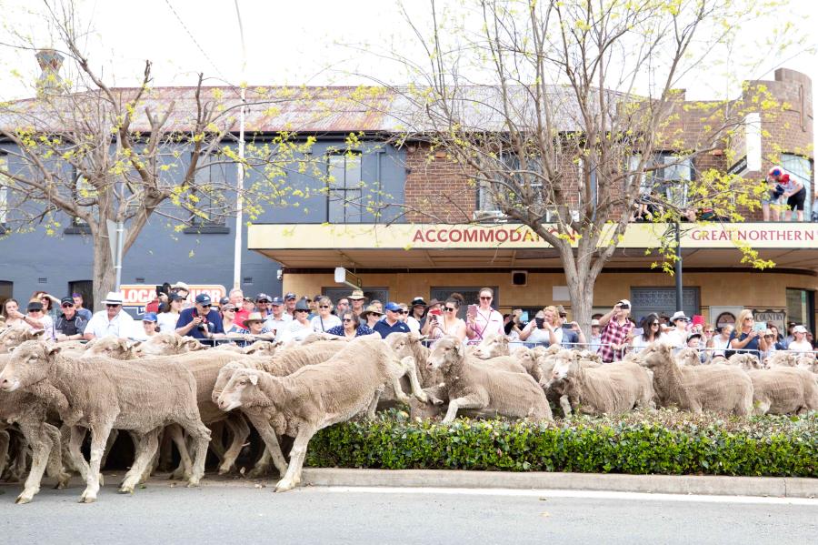 Sheep run during the 23rd Boorowa Irish Woolfest in the town of Boorowa in the Hilltops Region in Australia, Oct. 6, 2019. (Photo by Chu Chen/Xinhua)