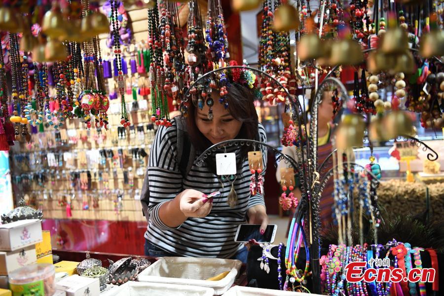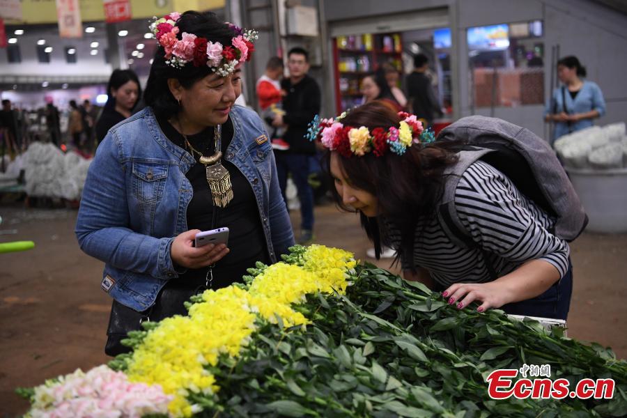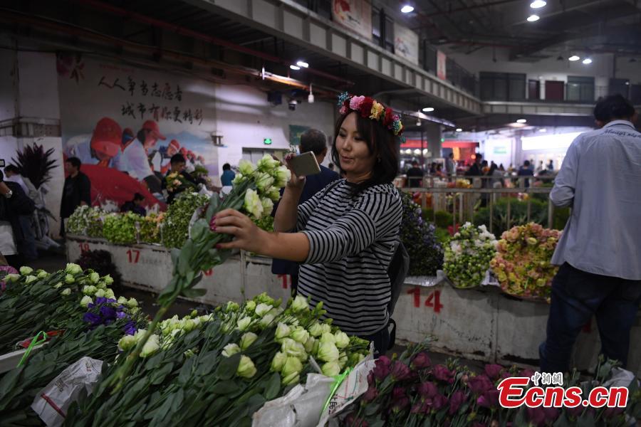 A reporter from a media tour group visits the Dounan Flower Market in Kunming City, Yunnan Province, Oct. 7, 2019 to view the largest market selling freshly cut flowers in China. The media tour group includes members of 24 overseas Chinese media outlets in countries including the United States, Canada and Australia. They will visit Kunming, Puer and Xishuangbanna to learn about developments and changes mainly in China’s border areas over the past 70 years. (Photo: China News Service/Kang Ping)