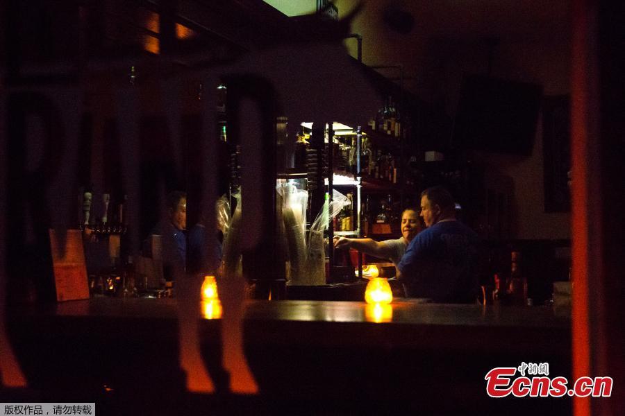 Rick Shaw bartends using light from a lantern at the Town Square Sports Bar in Sonoma, California, on October 9, 2019, during a planned power outage by the Pacific Gas & Electric (PG&E) utility company. Rolling blackouts set to affect millions of Californians began on October 9 as a utility company started switching off power to an unprecedented number of households in the face of hot, windy weather that raises the risk of wildfires. (Photo/Agencies)