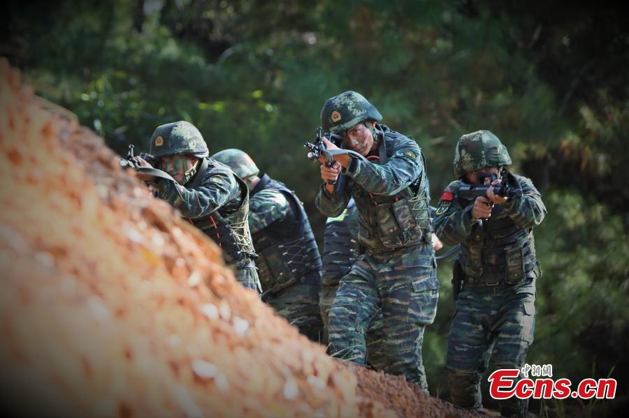 Armed police for special operations undergo a training in a forest in Baise, South China's Guangxi Zhuang Autonomous Region, Oct. 11, 2019. The training aimed to improve joint responses to complex emergencies. (Photo: China News Service/Yu Haiyang)