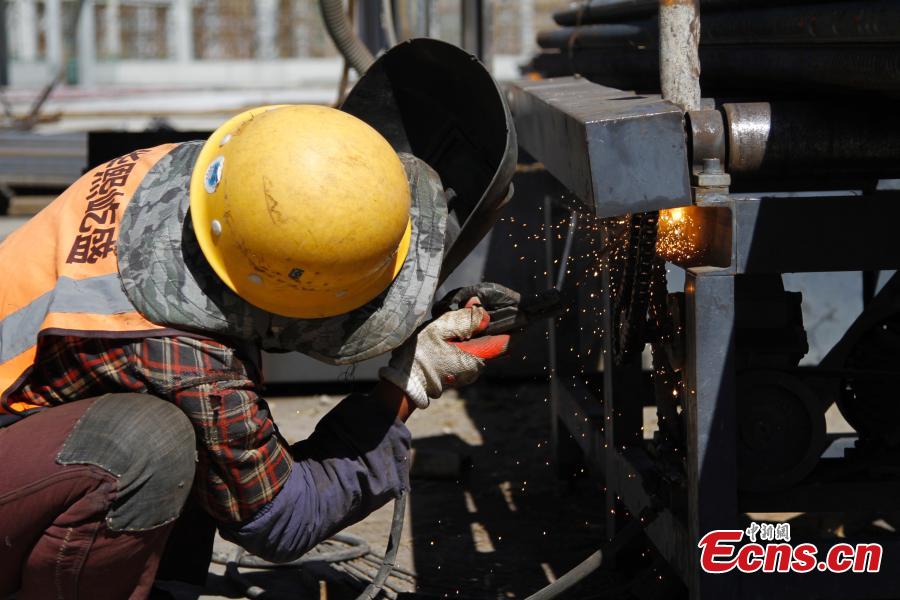 The renovation underway at the Gonggar Airport in Lhasa, capital of Southwest China's Tibet Autonomous Region. The renovation project achieved a milestone on Friday as concrete works of Terminal 3, the largest in the autonomous region, were completed. (Photo provided to China News Service)