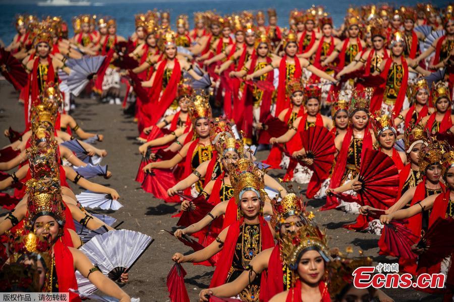 This picture taken on October 12, 2019 shows a traditional dancer performing during the Gandrung Sewu festival on Boom beach in Banyuwangi, East Java. The annual Gandrung Sewu festival attracts thousands of tourists to Banyuwangi on the eastern tip of Java. (Photo/Agencies)