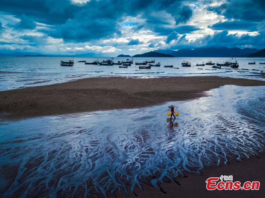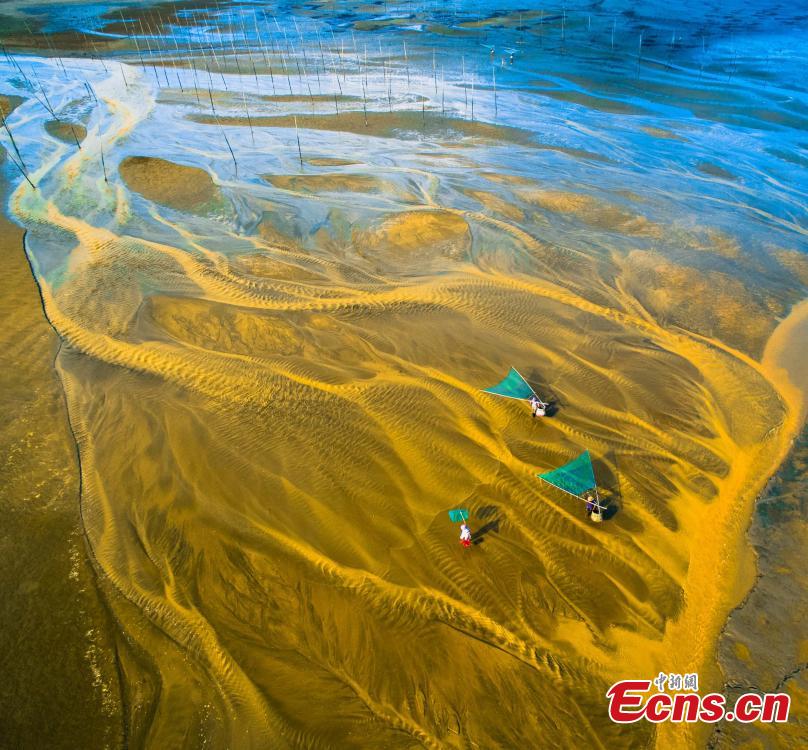 Mudflats in Xiapu County, Fujian Province, Oct. 12, 2019. Located in the north-western Taiwan Straits, the county has 480 kilometers of coastline and 1.04 million mu (69,000 hectares) of mudflats. It’s also ranks in the top ten scenic spots for nature photography in China. The county hosts a marathon and a photography festival. (Photo: China News Service/Zheng Ge)