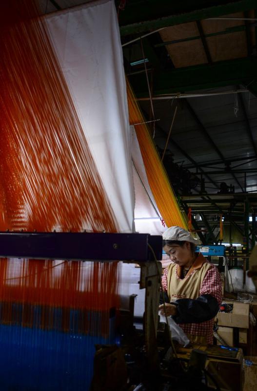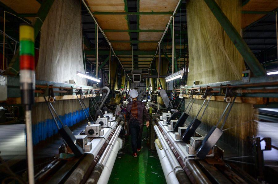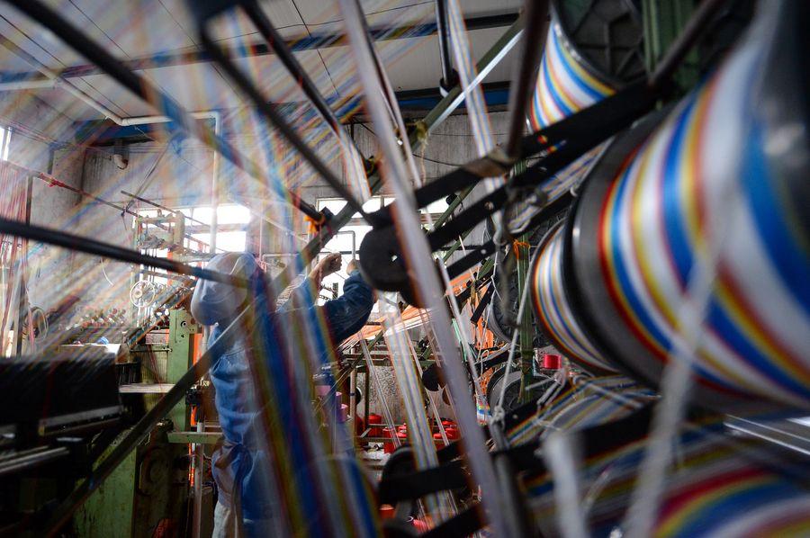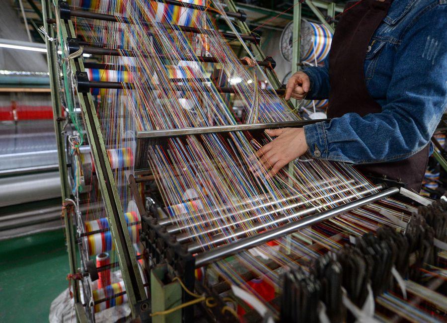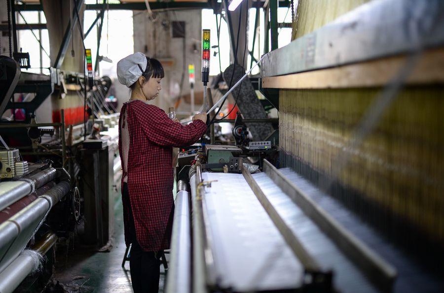 A weaver works beside a loom at a hada plant in Ranyi Township, southwest China's Sichuan Province, Oct. 14, 2019. (Xinhua/Tang Wenhao)