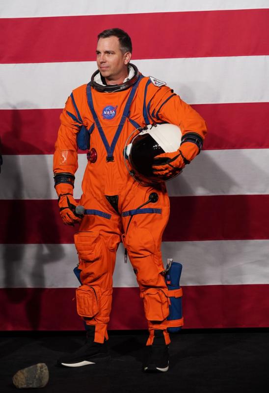 Lead engineer Dustin Gohmert dispays the Orion Crew Survival System spacesuit at NASA headquarters in Washington D.C., the United States, on Oct. 15, 2019. (Xinhua/Liu Jie)