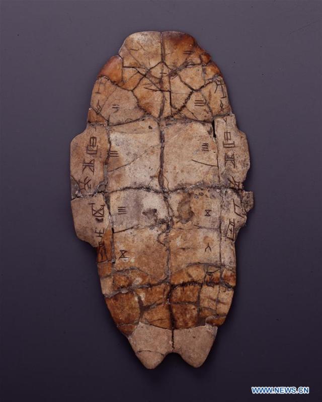 The undated file photo shows the exhibit to be displayed at the oracle bone inscriptions-themed exhibition at the National Museum of China in Beijing, capital of China. China will commemorate the 120th anniversary of the discovery of oracle bone inscriptions with a series of high-profile events. An oracle bone inscriptions-themed exhibition will be opened at the National Museum of China from Oct. 22. Jiaguwen, or oracle bone inscriptions, are an ancient Chinese language named for their inscriptions on tortoise shells and animal bones. They are a primitive form of Chinese characters and the oldest fully-developed characters in China. (National Museum of China/Handout via Xinhua)