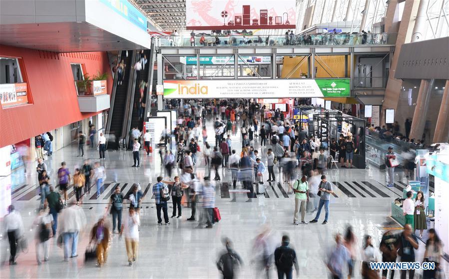People visit the 126th China Import and Export Fair, also known as the Canton Fair, in Guangzhou, south China's Guangdong Province, Oct. 15, 2019. The fair attracting about 25,600 exhibitors from home and abroad opened here on Tuesday. (Xinhua/Deng Hua)