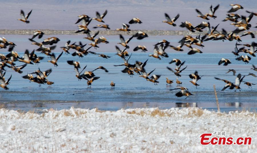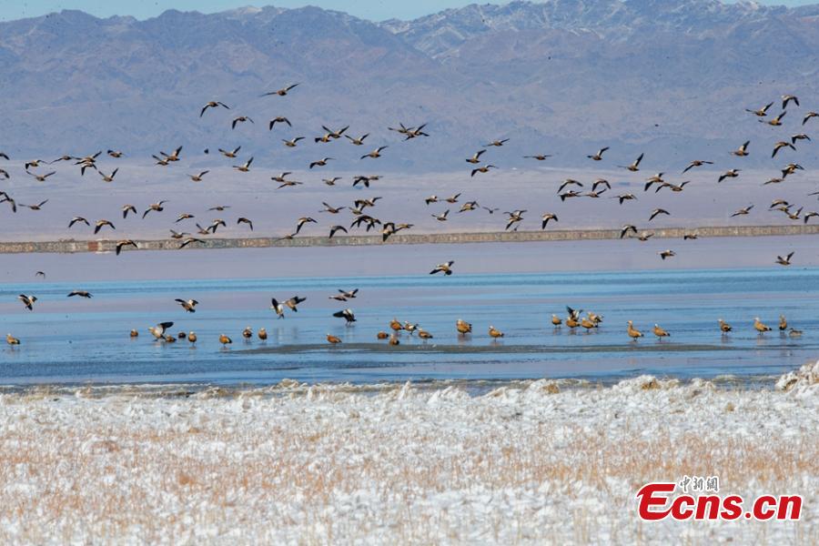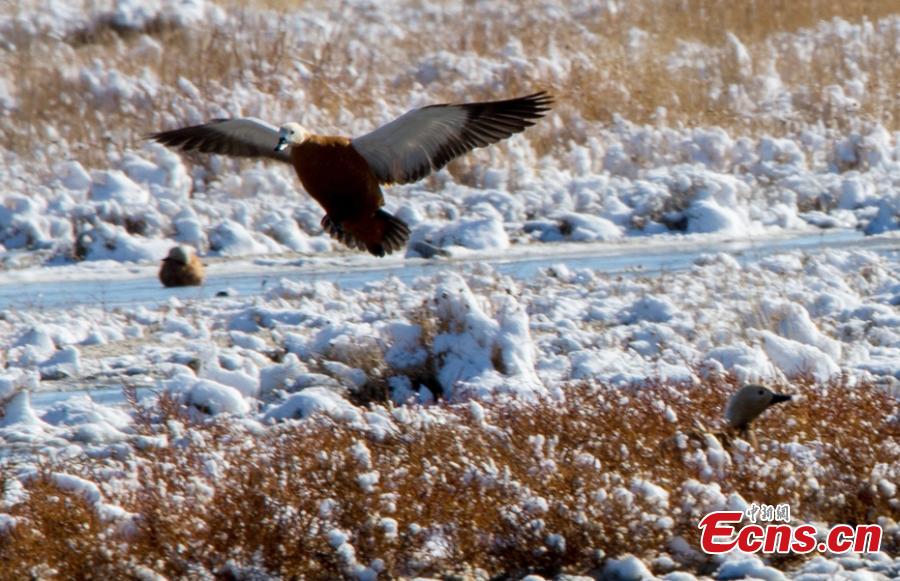 Snow covers the Barkol Wetland in Barkol Kazak Autonomous County, Northwest China’s Xinjiang Uygur Autonomous Region. The wetland is a habitat for migratory birds in winter. (Photo: China News Service/Da Wuti)