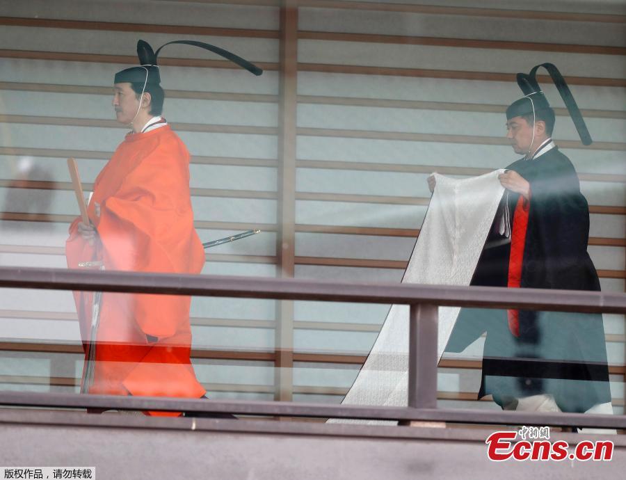 Japanese Emperor Naruhito on Tuesday proclaimed his enthronement in a highly ritualized, ancient-style ceremony held in the Seiden State Hall at the Imperial Palace in Tokyo in front of 2,000 guests from around the world. In the official coronation ceremony known as "Sokuirei Seiden no gi," the 59-year-old emperor wearing a dark reddish-brown robe known as a "Korozen no goho" only worn by emperors, made his ascension to the 6.5-meter-high canopied Takamikura imperial throne.