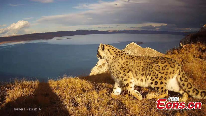An image of a snow leopard has been captured by an infrared camera installed in the headwaters area of the Yellow River in Qinghai Province. The Yuanshangcao nature reserve center said field surveys and infrared cameras collected thousands of photos and video footage of snow leopards, a critically endangered species in China, from Oct. 12 to 17. Years of effort have improved ecological conservation at the headwaters area of the Yellow River, which is part of the larger Sanjiangyuan National Park. Sanjiangyuan is home to the headwaters of the Yangtze, Yellow and Lancang rivers and many rare wildlife species. (Photo provided to China News Service)