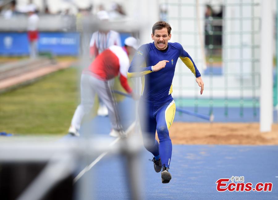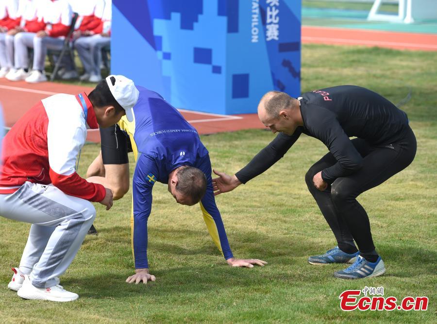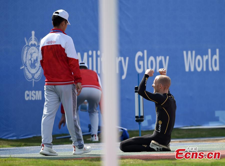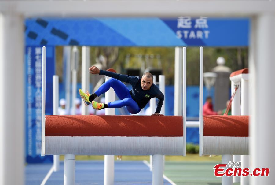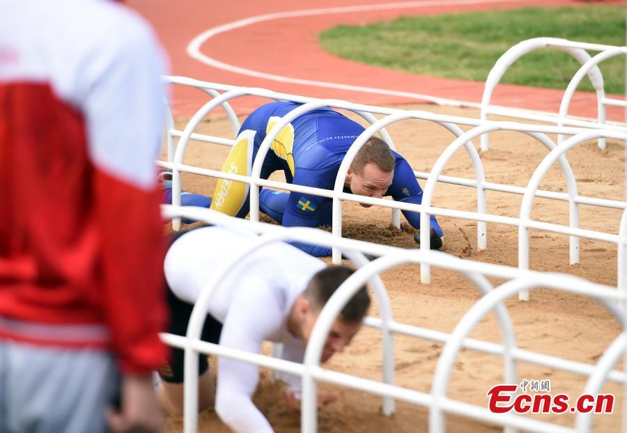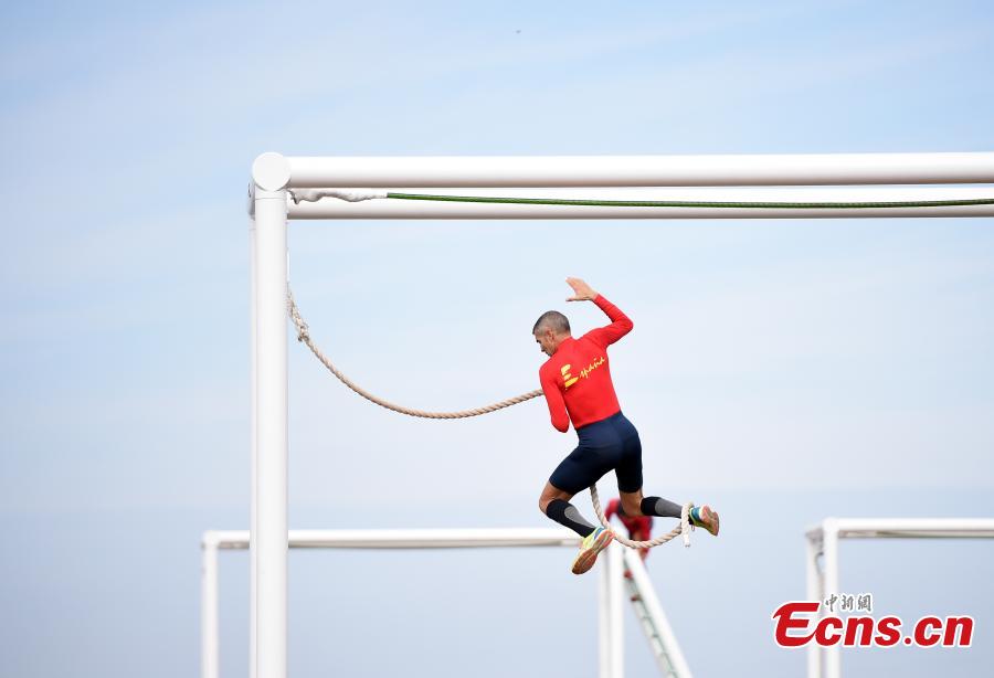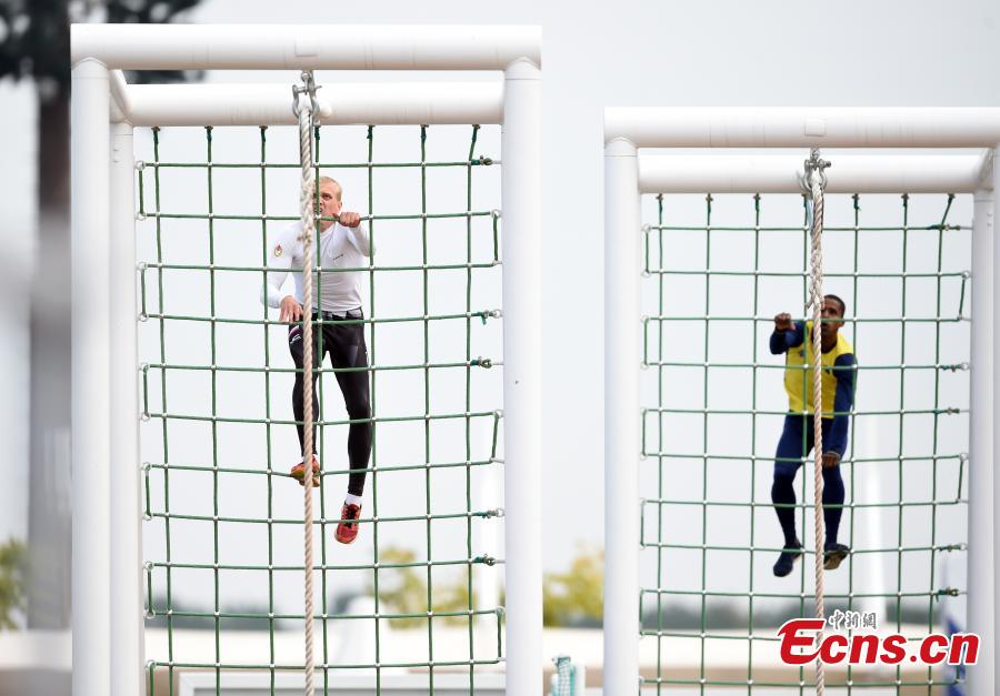 Participants in the naval pentathlon event at the 7th CISM Military World Games in Wuhan City, Central China’s Hubei Province, Oct. 23, 2019. The obstacle course stretches 305 meters for men and 280 meters for women. (Photo: China News Service/Hou Yu)