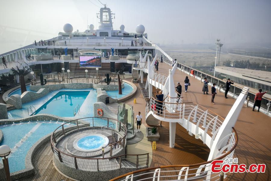 Visitors have a tour onboard the cruise ship MSC Splendida in a port in north China’s Tianjin Municipality, Oct. 23, 2019. The ship’s total registered tonnage is 138,000 tons, and it includes a total 1,637 exclusive cabins and a maximum passenger capacity of 4,363 people. The ship’s itinerary includes stops in Tianjin, Kitakyushu, Nagasaki and Fukuoka. (Photo: China News Service/Tong Yu)