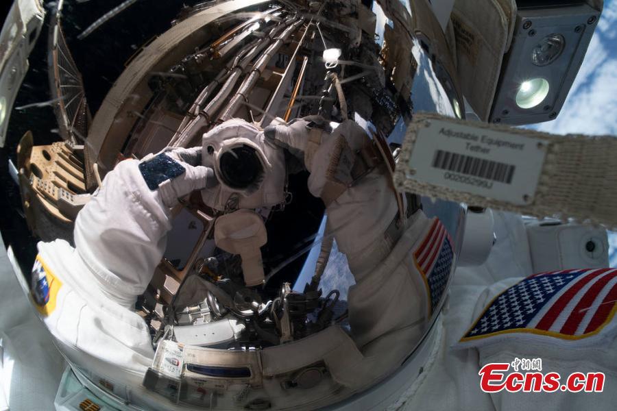 Photo released by NASA on Oct. 22, 2019, shows astronauts Christina Koch taking an out-of-this-world "space-selfie." She and fellow NASA astronaut Jessica Meir ventured into the vacuum of space for seven hours and 17 minutes to swap a failed battery charge-discharge unit (BCDU) with a spare during the first all-woman spacewalk. (Photo/NASA)