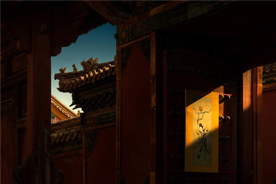 A glimpse of the Forbidden City in Beijing is seen through the shadows. (Photo provided by People's Daily)