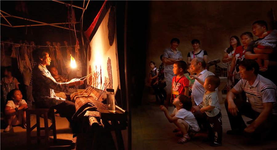 The audience is entranced by a shadow puppet show in a village in Northwest China's Gansu Province. (Photo provided by People's Daily)