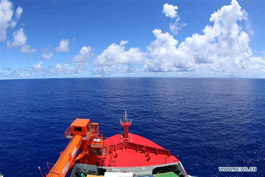 China's icebreaker Xuelong 2 sails near the equator, Oct. 24, 2019. China's first domestically made polar icebreaker Xuelong 2, or Snow Dragon 2, crossed the equator and entered the southern hemisphere for the China's 36th Antarctic expedition after it started its maiden voyage from the southern Chinese city of Shenzhen on Oct. 15. (Xinhua/Liu Shiping)