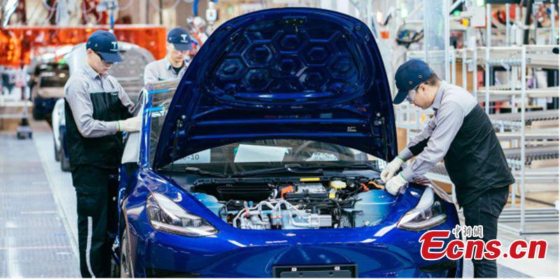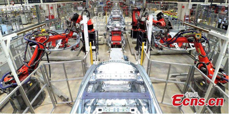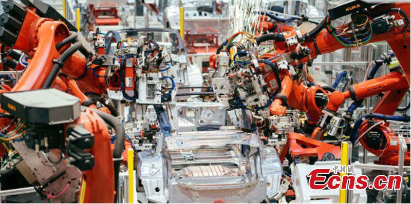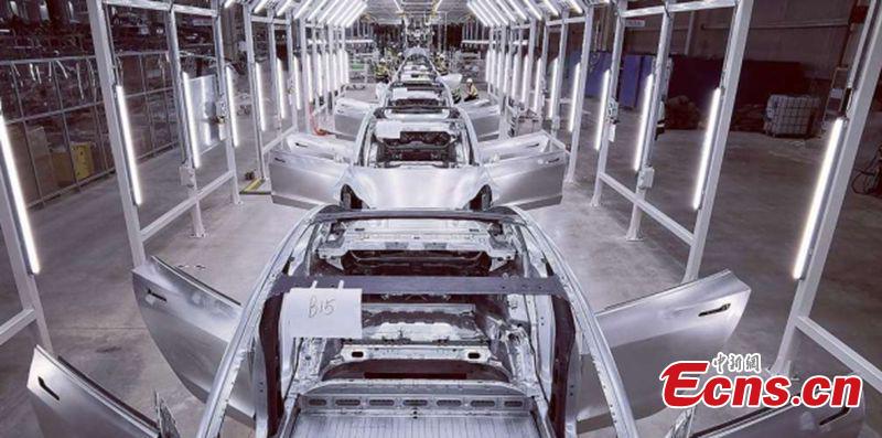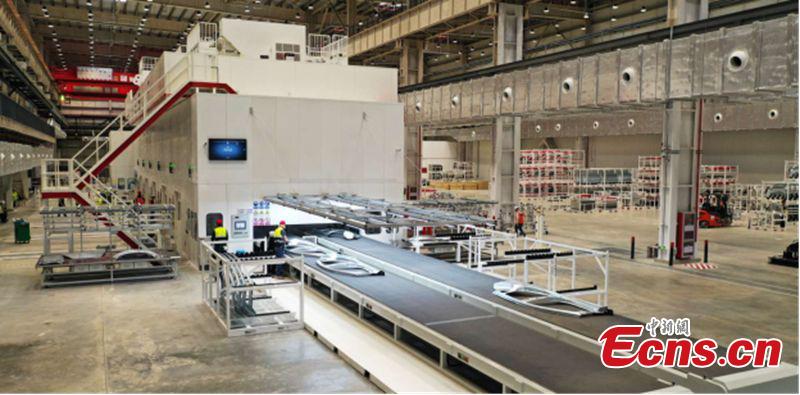An inside view of Tesla's gigafactory in Shanghai, Oct. 24, 2019. The Shanghai gigafactory, the largest foreign-invested manufacturing project in Shanghai, broke ground in January this year and took less than 10 months to build. In its third-quarter earnings report, the automaker said trial production at the site had begun ahead of schedule. (Photo provided to China News Service)