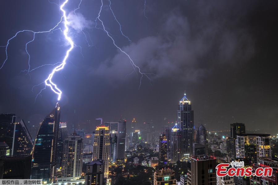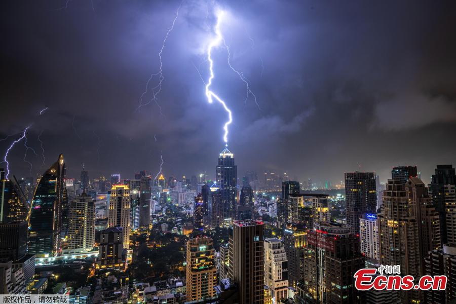 In this picture taken on October 27, 2019, lightening strikes on a building during a thunderstorm in Bangkok. (Photo/Agencies)