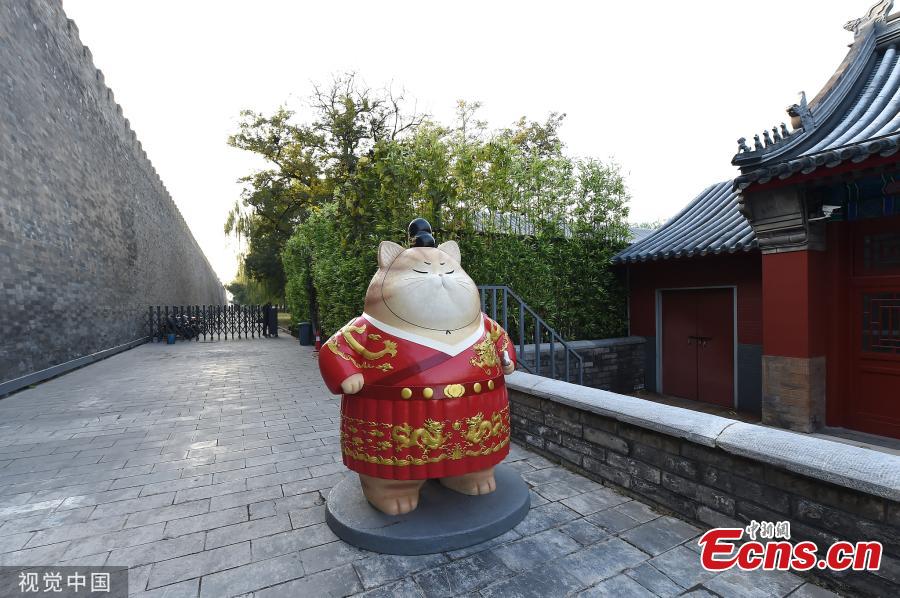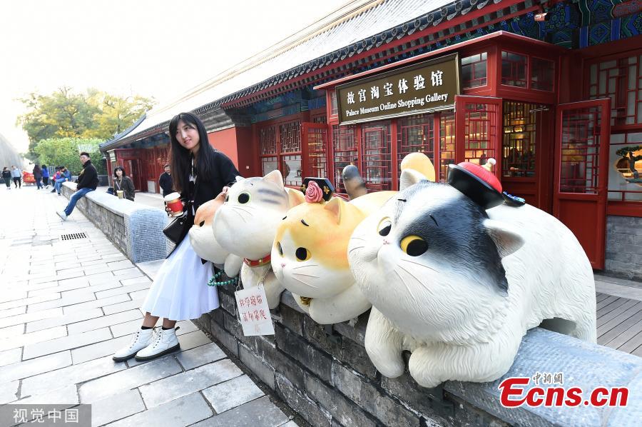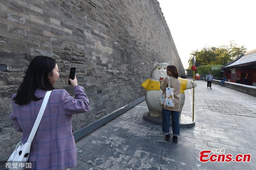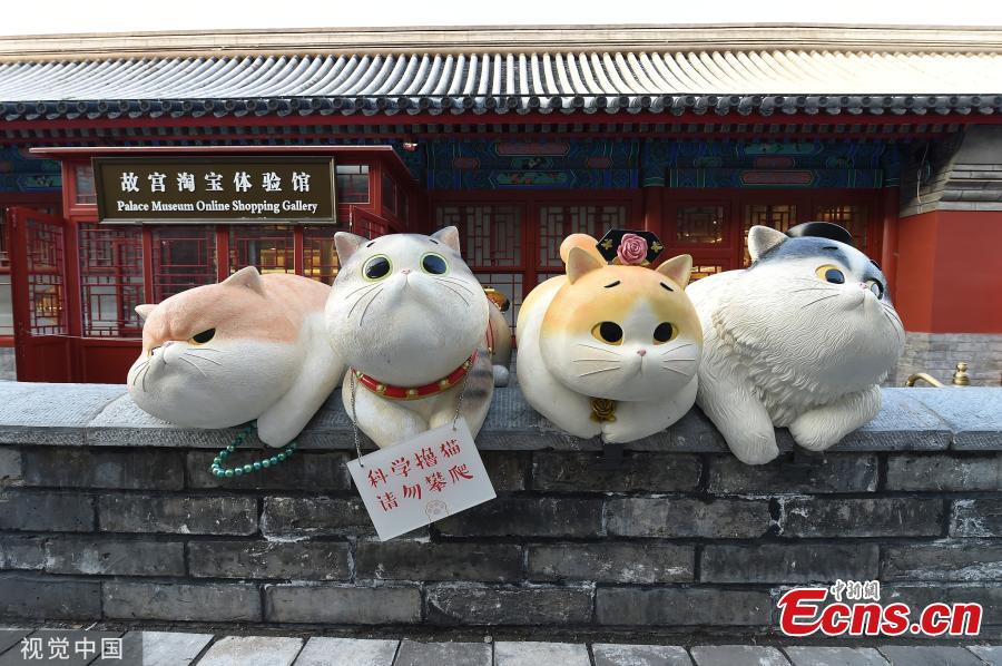 Giant statues of cats are on display near the gate of divine prowess at Beijing’s Palace Museum, with visitors flocking to the site to take pictures with these little stars. The Palace Museum, alsoe known as the Forbidden City, is home to about 200 stray cats, some of which are believe to be the offspring of royal cats raised by emperors and their concubines in ancient times. (Photo/VCG)
