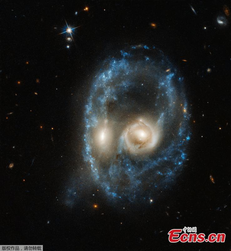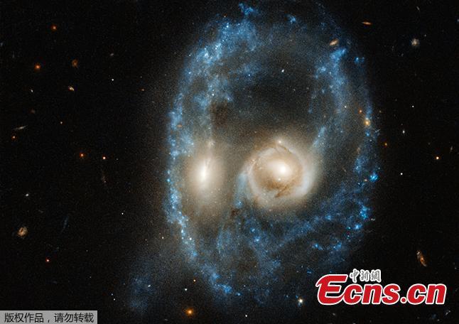 NASA has released a breathtaking image snapped by the NASA/ESA Hubble Space Telescope of the Arp-Madore 2026-424 system. Arp-Madore 2026-424 is located some 704 million light-years from Earth in the constellation of Microscopium. Also known as ESO 285-19, it is actually the result of a titanic head-on collision between two galaxies of equal size. The violent encounter gives the Arp-Madore 2026-424 system an arresting ring structure for a short amount of time, about 100 million years. (Photo/Agencies)