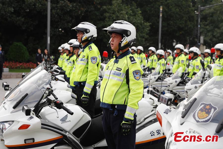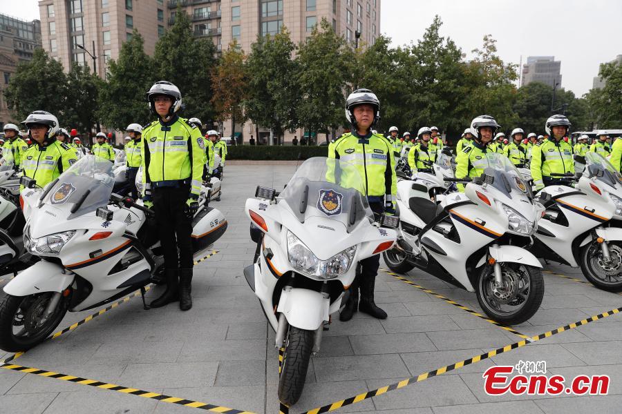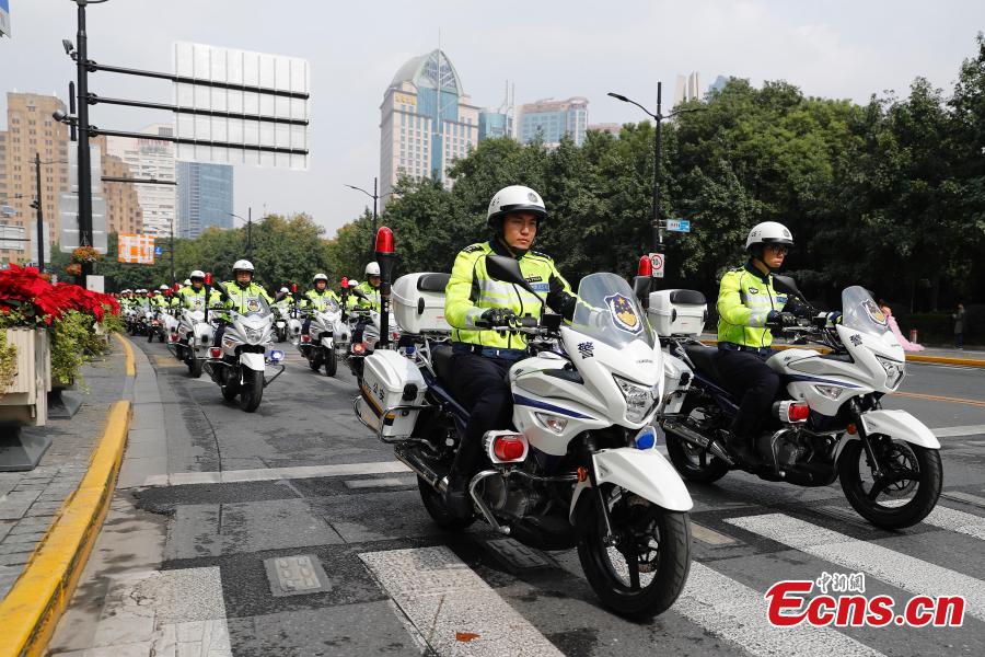 The launching ceremony for the newly formed motorbike police unit of the Huangpu Station of the Shanghai Municipal Public Security Bureau on Oct. 28, 2019. (Photo: China News Service/Yin Liqin)