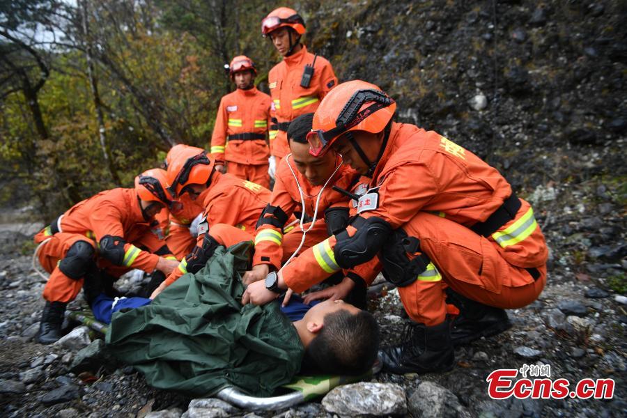 Firefighters display search and rescue skills in a drill at the Yulong Snow Mountain in Lijiang City, Southwest China’s Yunnan Province, Oct. 27, 2019. Last year, China decided to transform its fire services and armed forestry police in order to build a national firefighting response team. Lijiang has a firefighting rescue team dedicated to ensuring the safety of the mountain, a popular tourist attraction in China. (Photo: China News Service/Liu Ranyang)