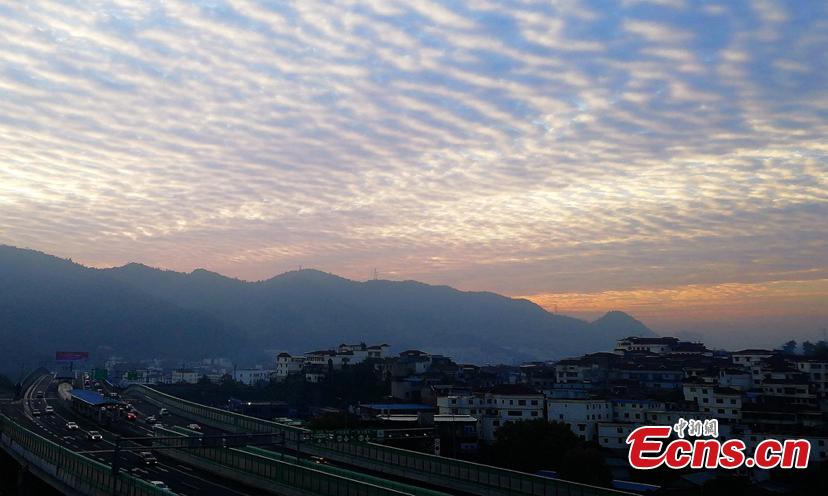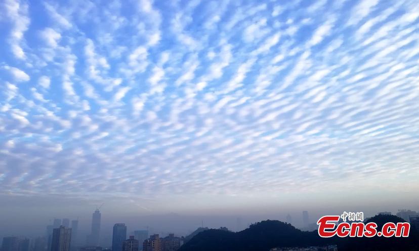 Clouds that seem to be rows of fluffy ripples are seen in the sky over Guiyang City, Southwest China’s Guizhou Province, Oct. 29, 2019. (Photo: China News Service/Shi Kui)