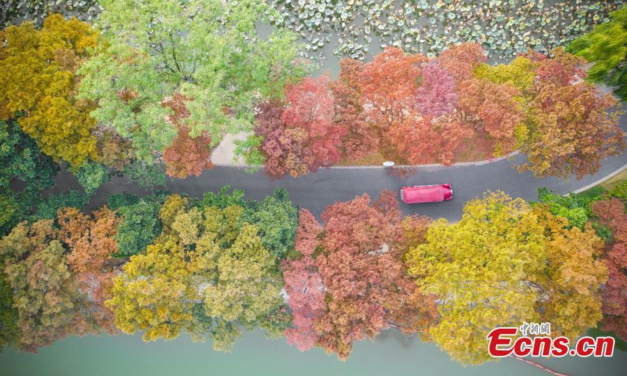 A bird's-eye view of autumn scenery at the Xuanwu Lake, Nanjing city, capital of East China's Jiangsu province on October 29, 2019. (Photo: China News Service/Su Yang)
