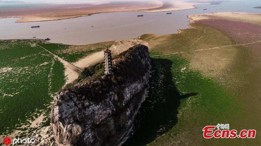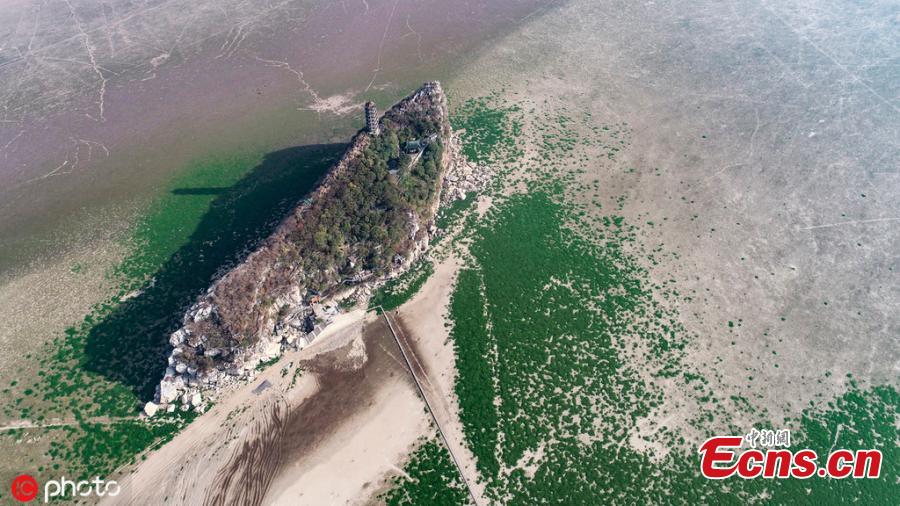 Poyang Lake, China's largest freshwater lake, recently transitioned into its dry season Luoxingdun, a stone island with a 1,000-year history was even exposed to the air due to the exceedingly low water level. (Photo/IC)
