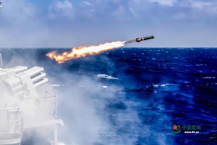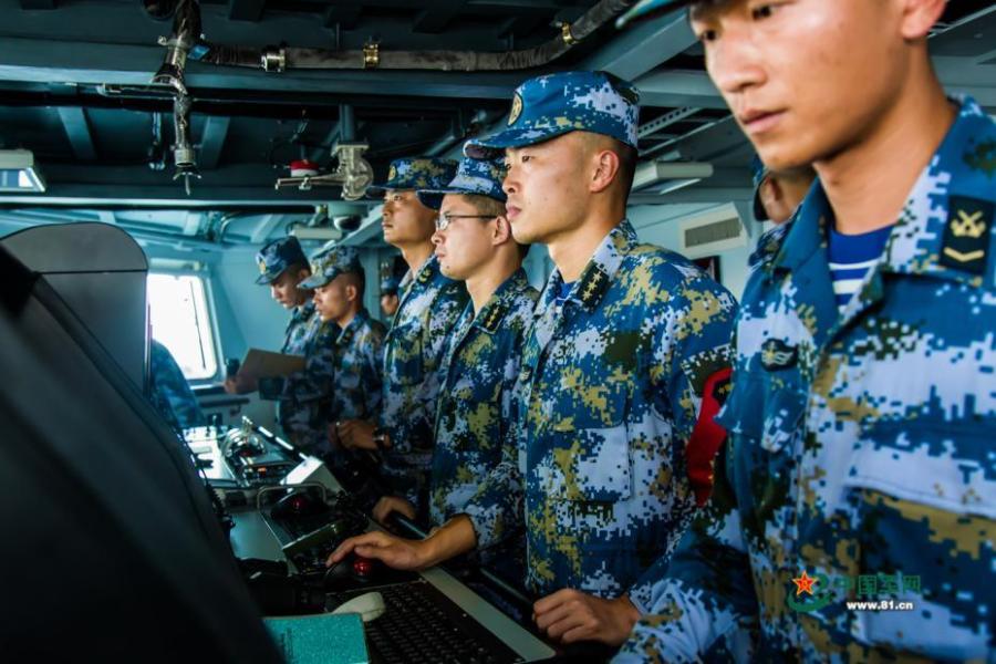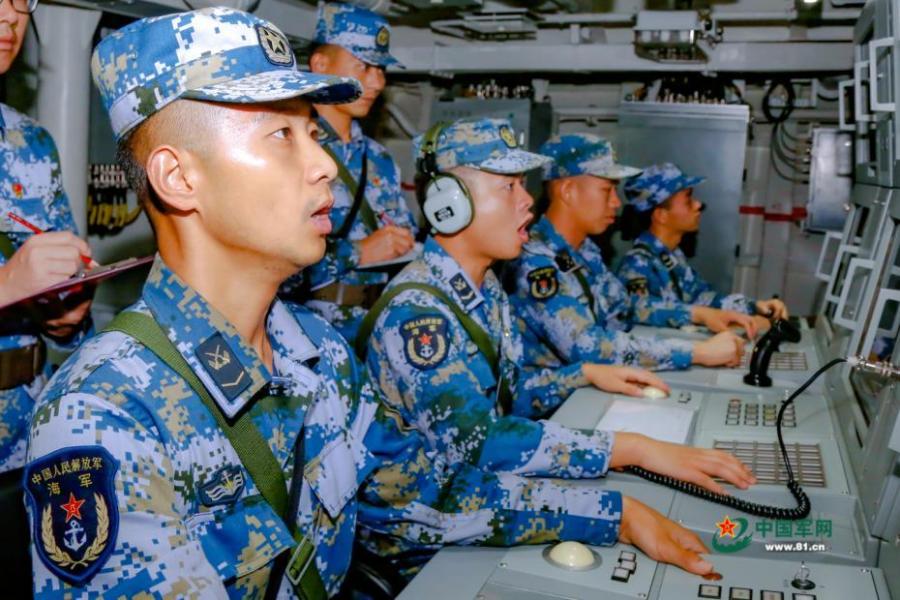 A PLA Navy fleet recently held a military drill on the South China Sea to improve its contingency response to complicated scenarios including a coordinated sea and air fight against submarine intrusion. (Photo/81.cn)