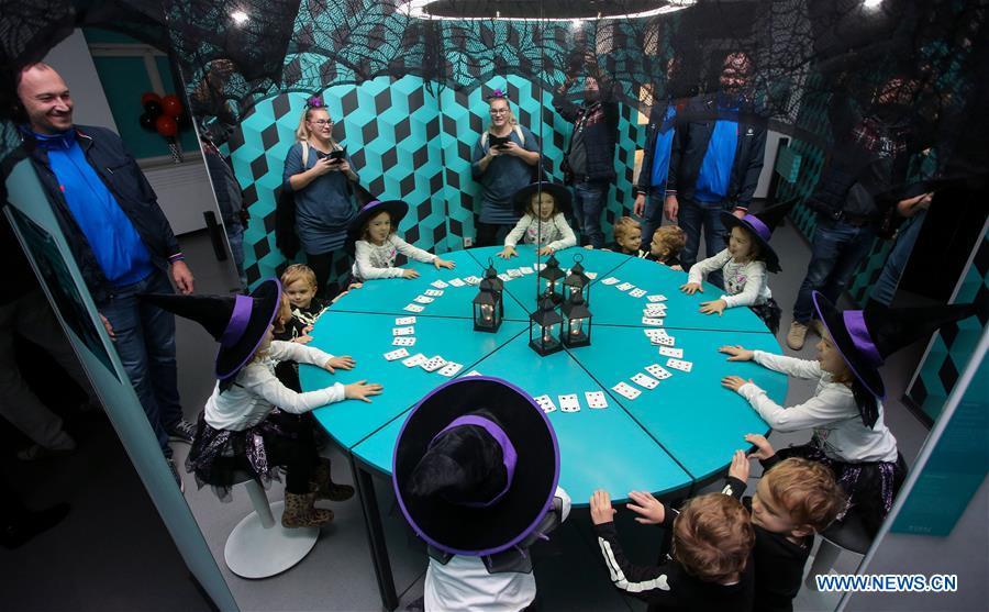 Children participate in a Halloween event in the Museum of Illusions in Zagreb, Croatia, Oct. 31, 2019. (Matija Habljak/Pixsell via Xinhua)