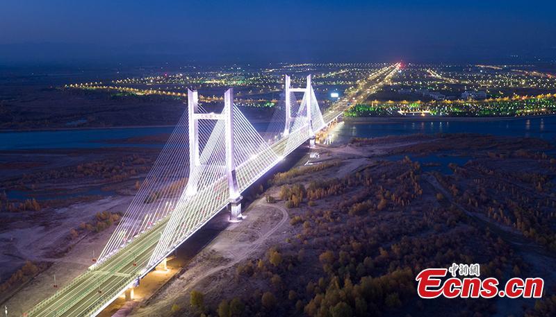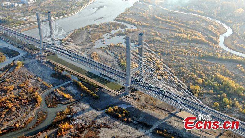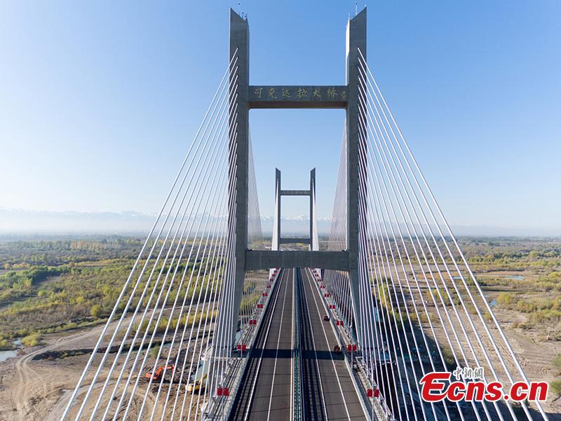 The Kokdala Bridge in Kokdala City, Northwest China’s Xinjiang Uygur Autonomous Region opens on Oct. 31, 2019. As the first concrete-decked cable-stayed bridge with two towers, it allows direct access across the Ili River in the city for the first time in 60 years. The city is under the jurisdiction of the fourth division of the Xinjiang Production and Construction Corps (XPCC), an economic and paramilitary organization. (Photo: China News Service/Yang Junqin)