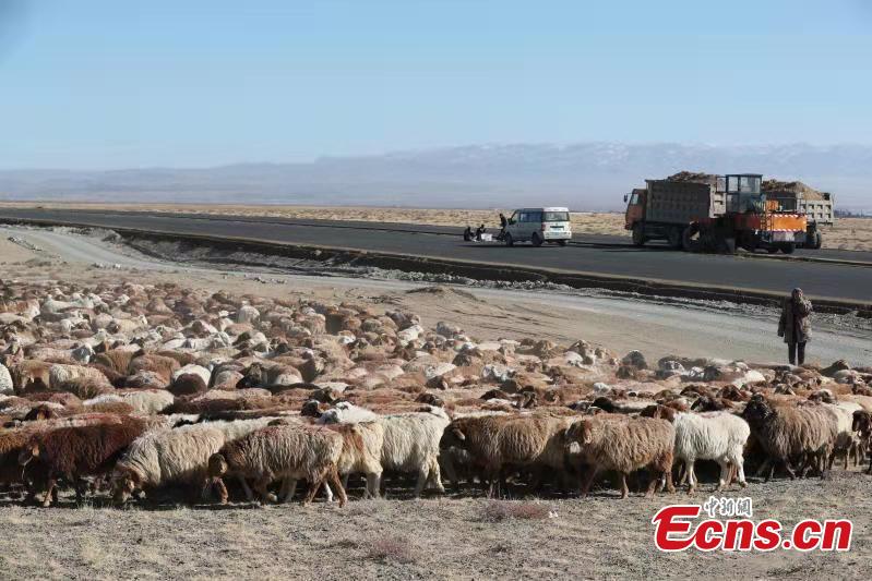 A view of the almost completed Barkol-Mori section of the Beijing-Xinjiang Expressway in Northwest China’s Xinjiang Uygur Autonomous Region, Oct. 31, 2019. The new expressway has a length of 2,582 kilometers and runs through the Gobi Desert. When complete, it will be the world’s longest road passing through a desert. (Photo: China News Service/Kong Xiangwen)