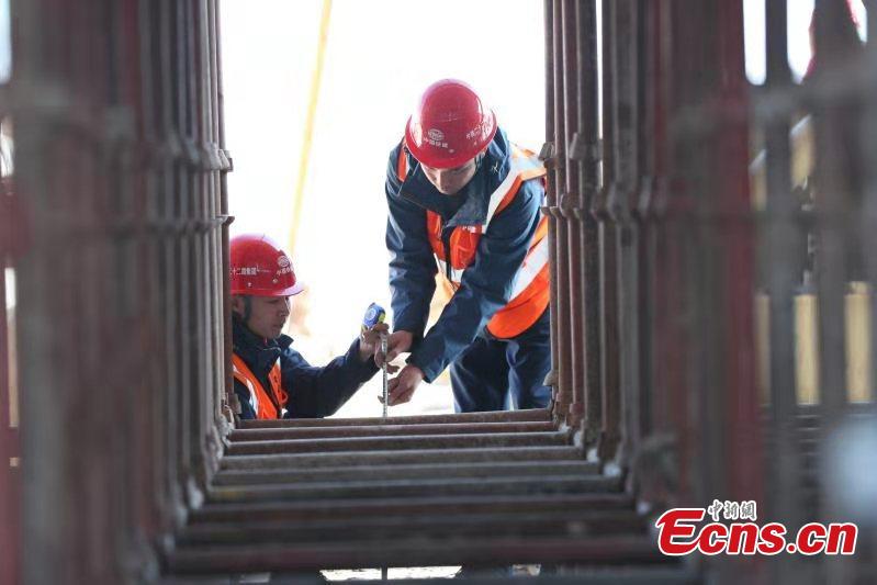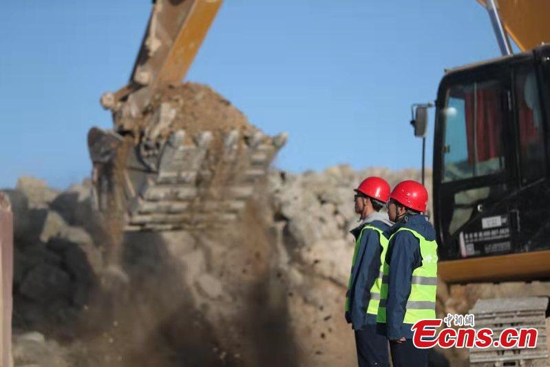People work at the construction site of the Barkol-Mori section of the Beijing-Xinjiang Expressway in Northwest China’s Xinjiang Uygur Autonomous Region, Oct. 31, 2019. The new expressway has a length of 2,582 kilometers and runs through the Gobi Desert. When complete, it will be the world’s longest road passing through a desert. (Photo: China News Service/Kong Xiangwen)