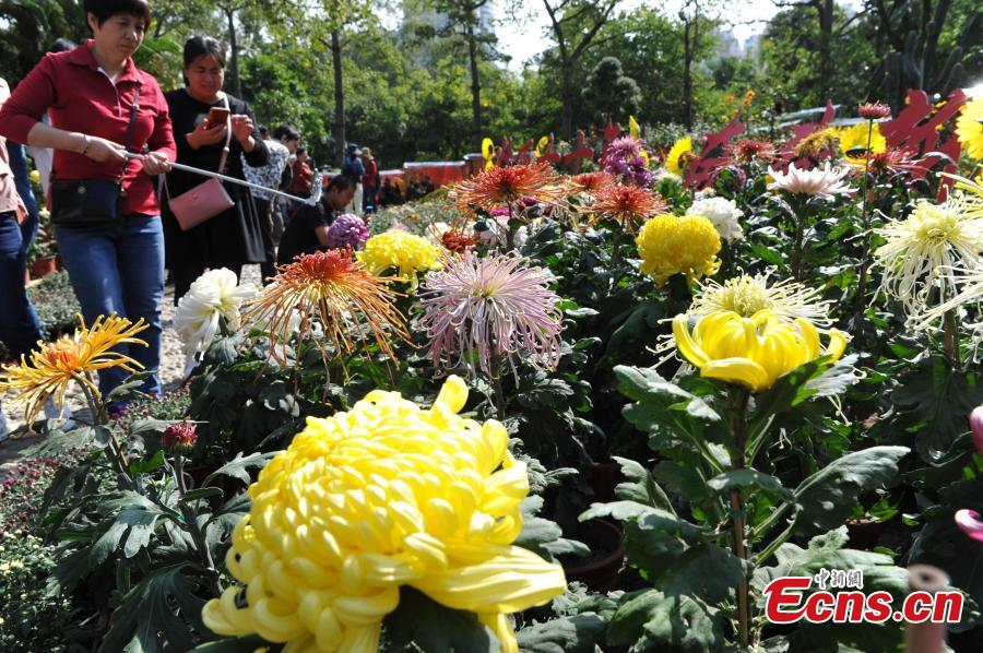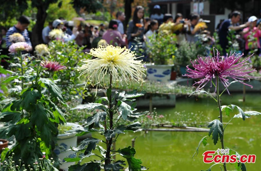 A chrysanthemum exhibition in Xihu Park in Fuzhou City, East China’s Fujian Province, Nov. 3, 2019. More than 20,000 pots of chrysanthemums, in nearly 600 varieties, were on display at the fair, attracting many tourists and local residents. The chrysanthemum is one of the "Four Gentlemen" of China’s favoured plants in ancient poetry, the others being the plum blossom, the orchid, and bamboo. (Photo: China News Service/Zhang Bin)