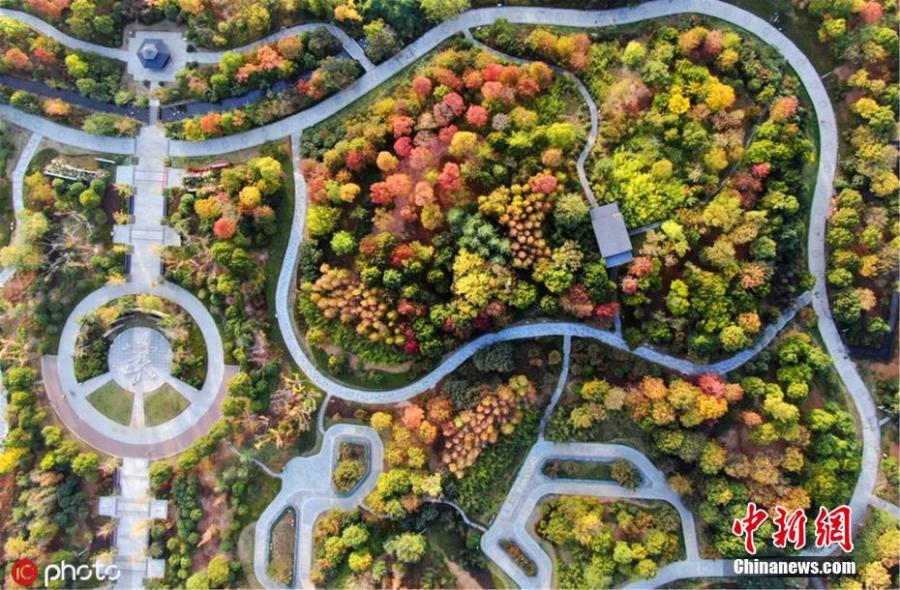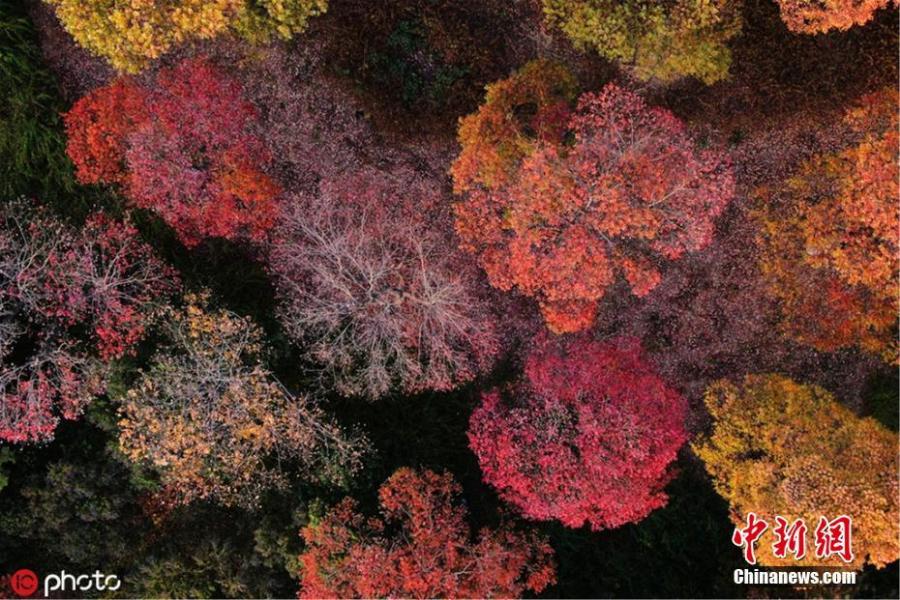 Stunning colors of Chinese tallow tree levees in autumn in Chongming Park of Jurong City, Jiangsu Province, Nov. 3, 2019. (Photo/ICphoto)
