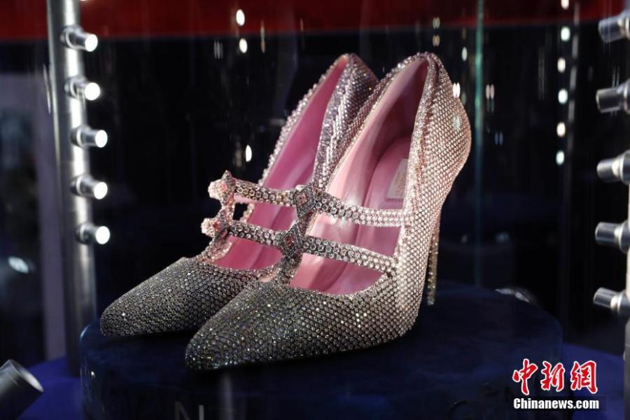 A pair of shoes, adorned with diamonds, is said to be worth more than 30 million yuan at the second China International Import Expo in Shanghai, Nov. 4, 2019. (Photo: China News Service/Han Haidan)