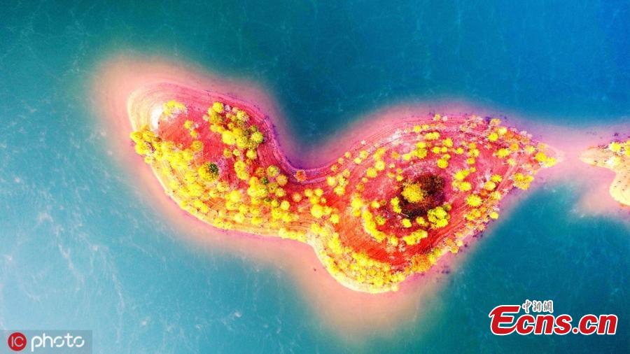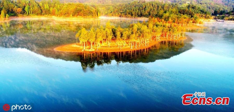 This aerial photo taken on Nov 7, 2019, shows metasequoia forests (dawn redwoods) decorate the landscape of Taizhou, East China's Zhejiang province. (Photo/IC)