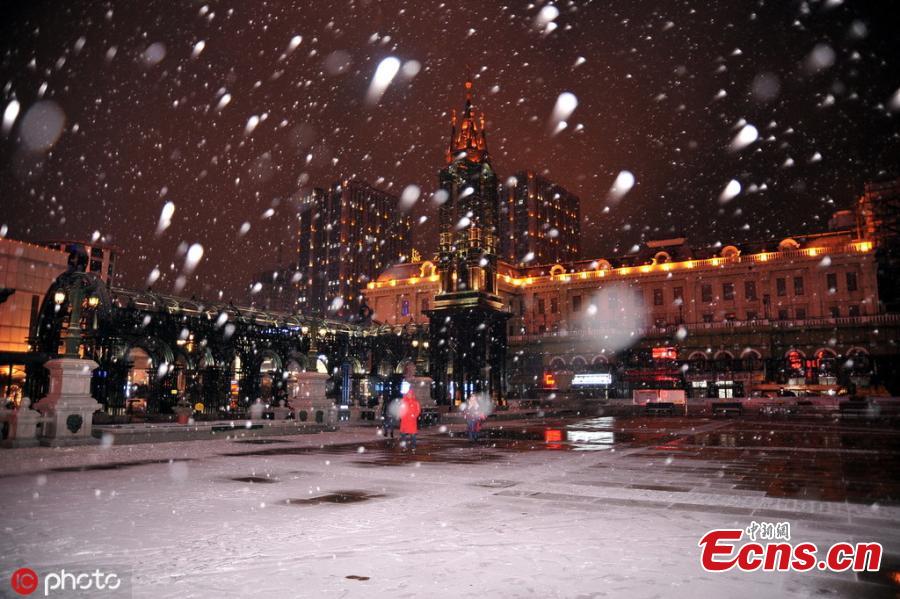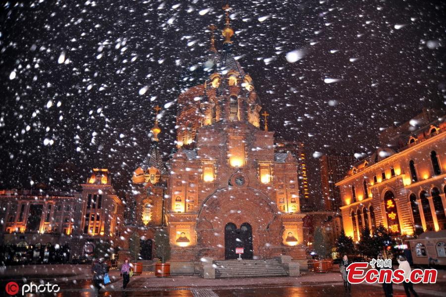 Snow falls in Harbin City, Northeast China’s Heilongjiang Province, Nov. 6, 2019. The city is known for its winter ice and snow festival. (Photo/ICphoto)