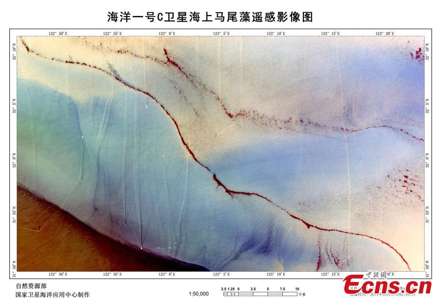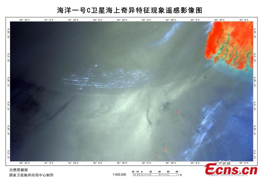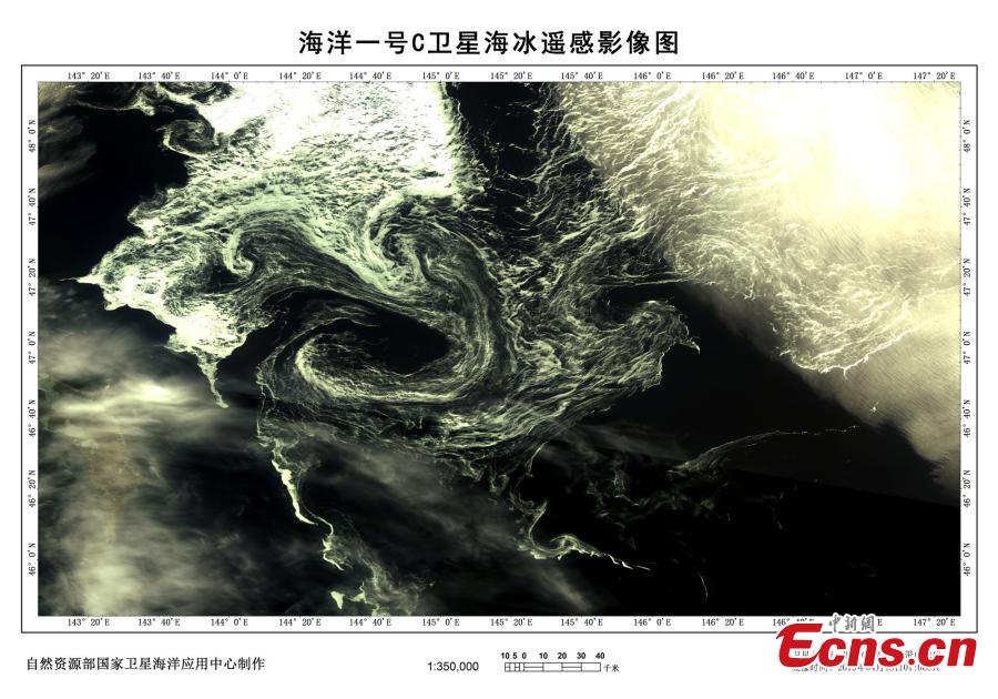 Liu Jianqiang, a researcher with the National Satellite Oceanic Application Center, shows remote sensing images from the Haiyang 1C oceanography satellite during a meeting in Hainan Tropical Ocean University in Sanya City, South China’s Hainan Province. The satellite, launched in Sept. 2018, will assist in monitoring ocean colour and water temperatures, providing basic data for research on the global oceanic environment. (Photo provided to China News Service)
