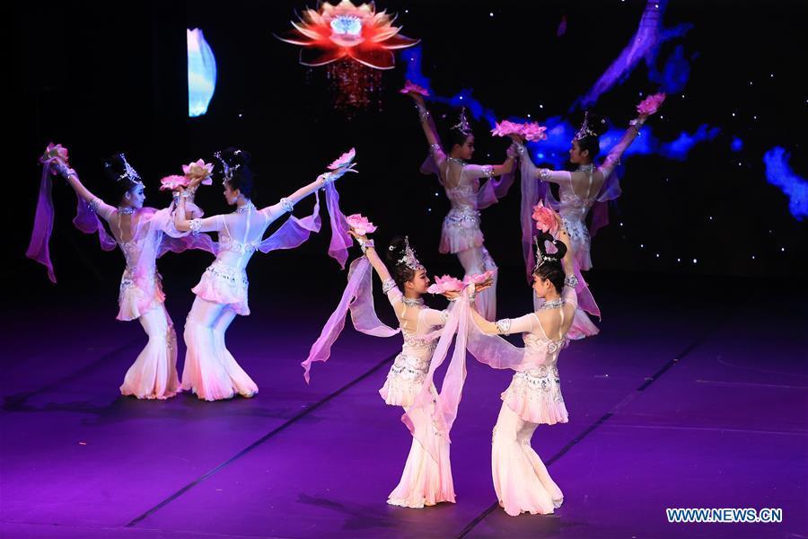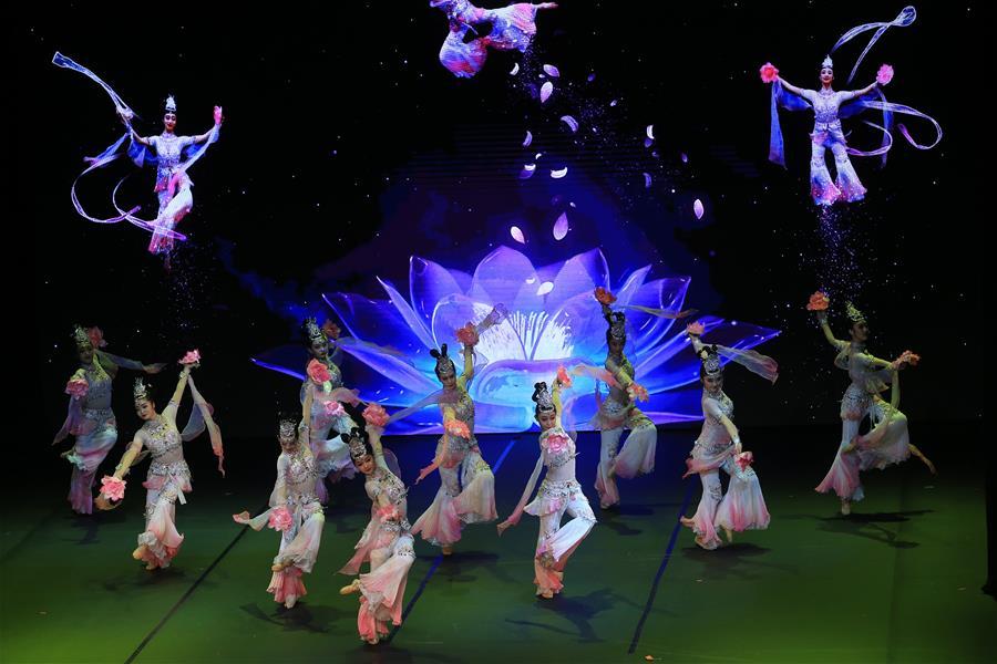 Artists perform in the spectacle "Millennium Meeting" in Athens, Greece, on Nov. 5, 2019. The spectacle "Millennium Meeting," inspired by the art of Chinese culture running through a remarkable history of thousands of years, was presented for the first time in Greece on Tuesday. (Xinhua/Marios Lolos)